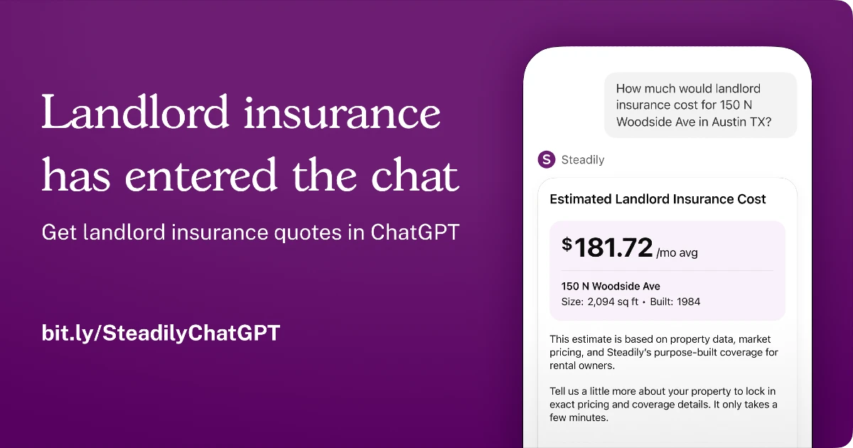 With millions of landlords increasingly using AI tools to analyze deals, evaluate rental markets, and manage their portfolios, Steadily is meeting customers where they already work. The new app allows landlords to quickly estimate insurance costs for rental properties without leaving the ChatGPT interface.